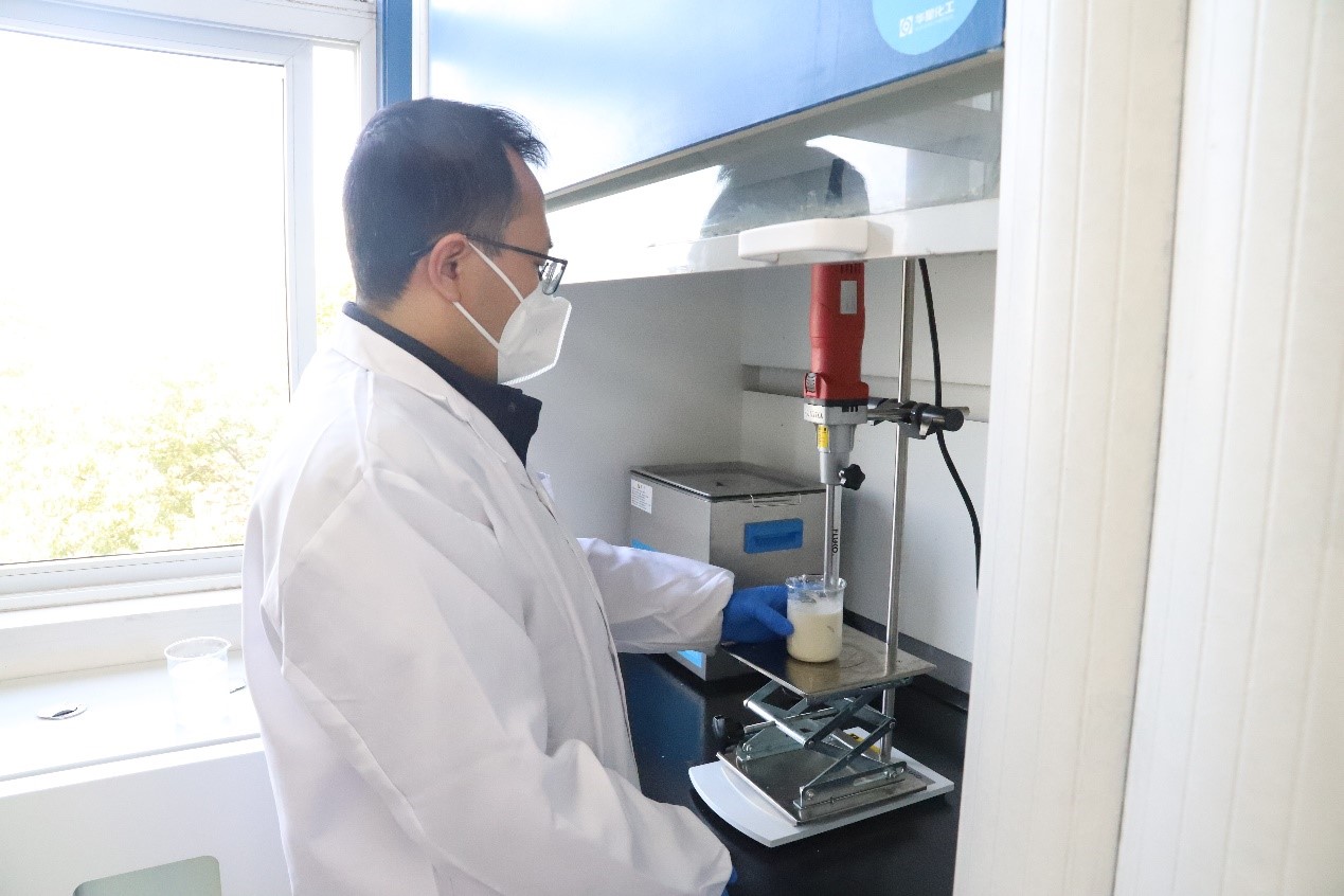時間緊、任務重,然而第一關就給華星公司科研工作者們來了個下馬威,某懸浮劑(超分散型)的配置,常規產品粘度大于500mPa.s,給生產加工帶來極大不便,更新配方迫在眉睫。董強帶領的科研小組需要在數百種藥劑中篩選出性能最好的助劑組合,即使每天不間斷連軸進行實驗,每天有效配比的藥劑組合也是有限的。每到實驗的關鍵階段,通宵達旦是常常的事,董強站在試驗臺前聚精凝神,觀察著實驗數據的變化。